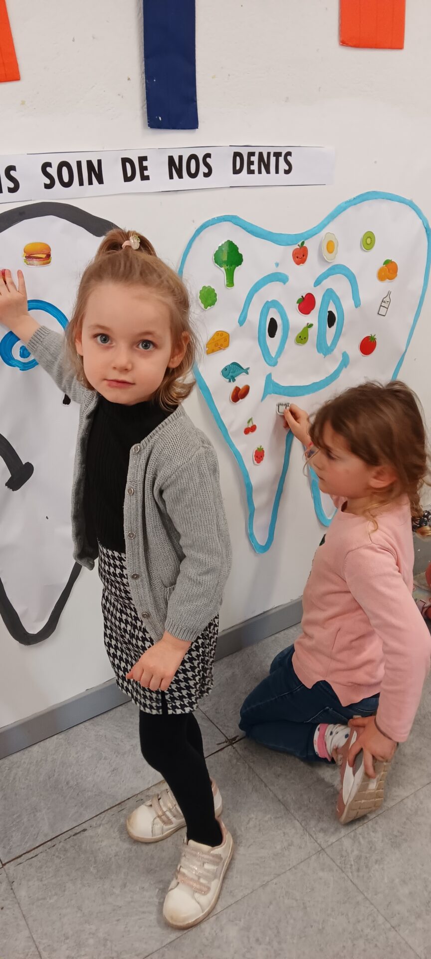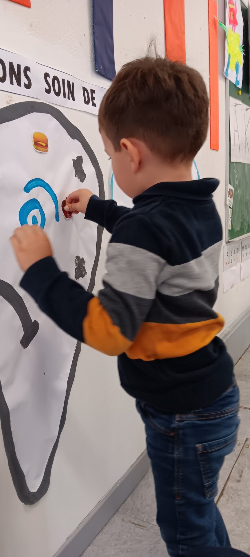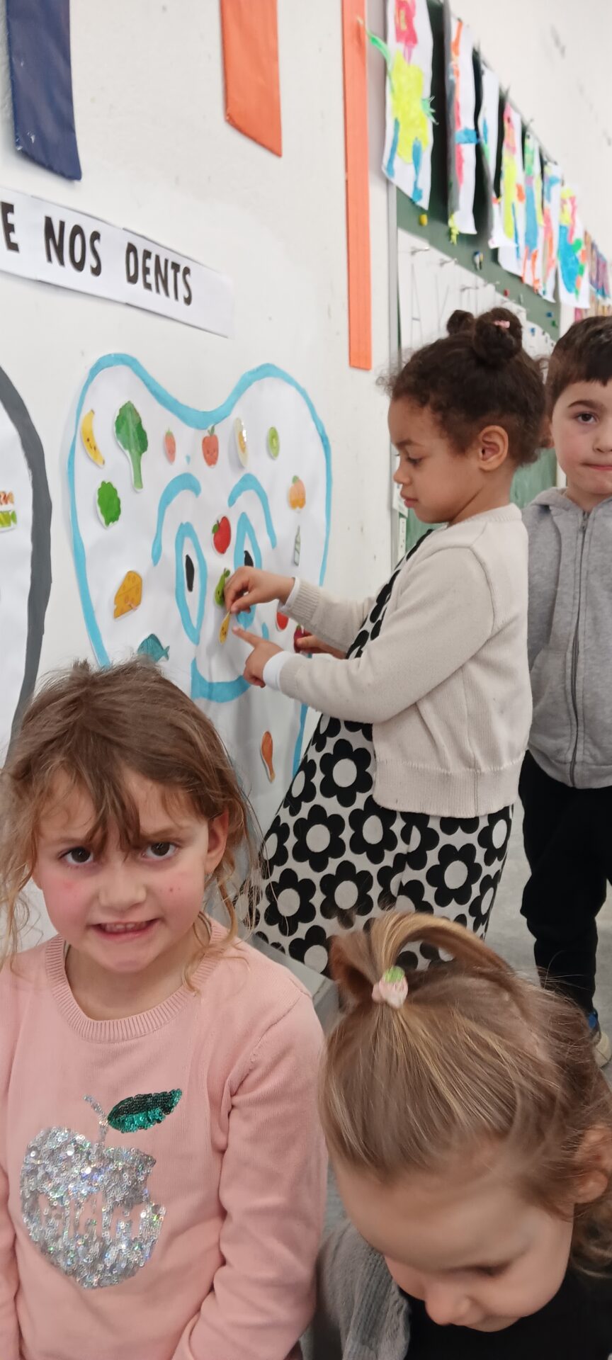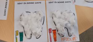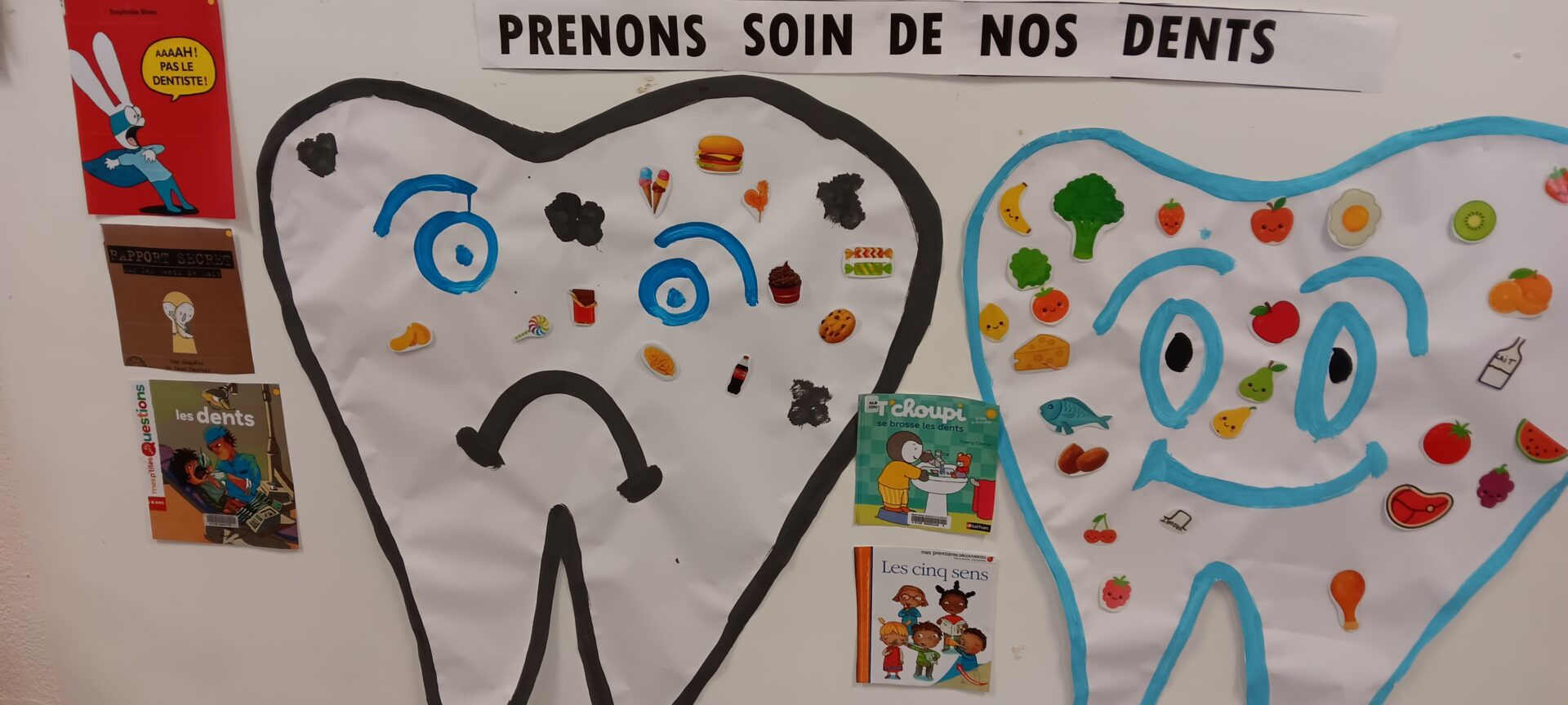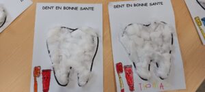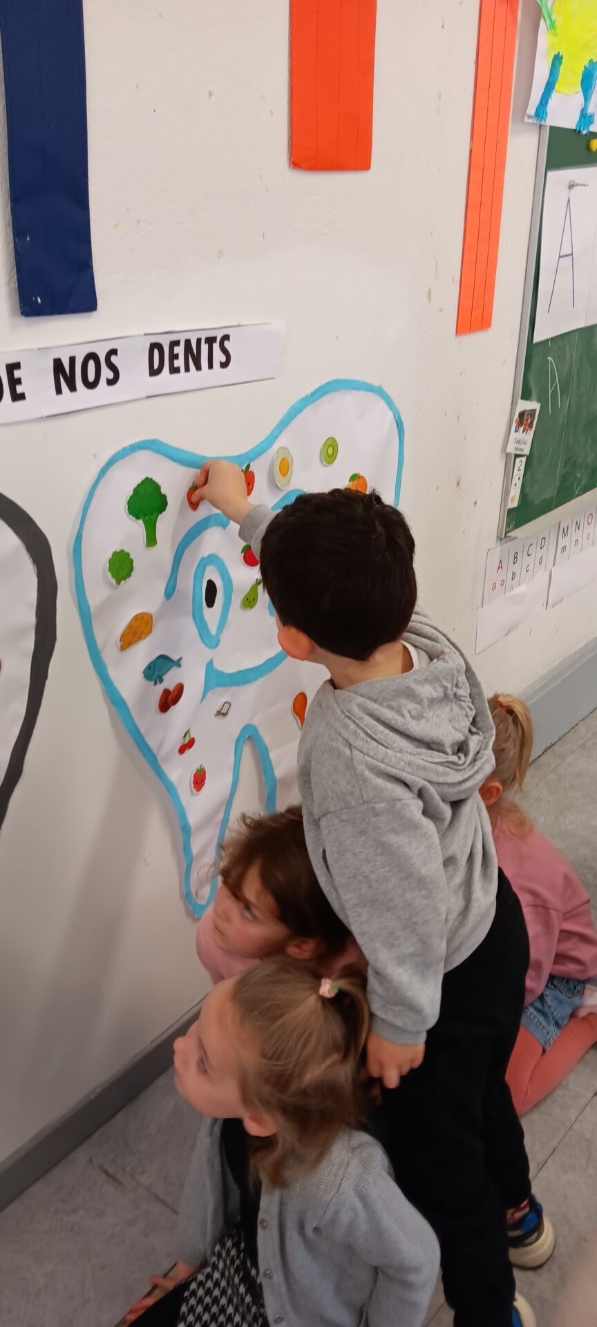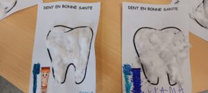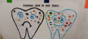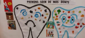 Après la visite de l’infirmière , la lecture de plusieurs albums et documentaires sur  la santé bucco-dentaire. Nous avons décidé de rechercher les aliments sains et mauvais pour les dents. Nous avons pu répondre à notre question : Pourquoi se brosser les dents : – pour avoir de belles dents – pour enlever les restes de nourriture – pour sentir « bon » de la bouche – pour enlever les microbes (les bactéries)  collés sur nos dents et ainsi éviter d’avoir des caries.